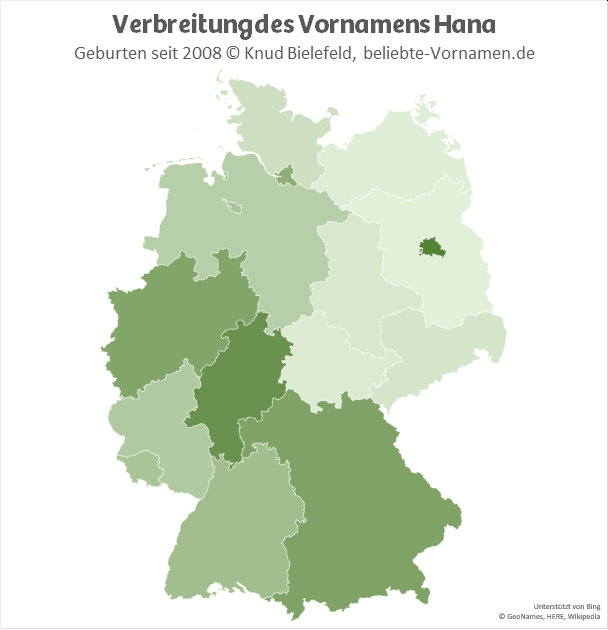 Der Mädchenname Hana wurde in Deutschland seit 2010 mindestens 2.700 Mal als erster Vorname vergeben.